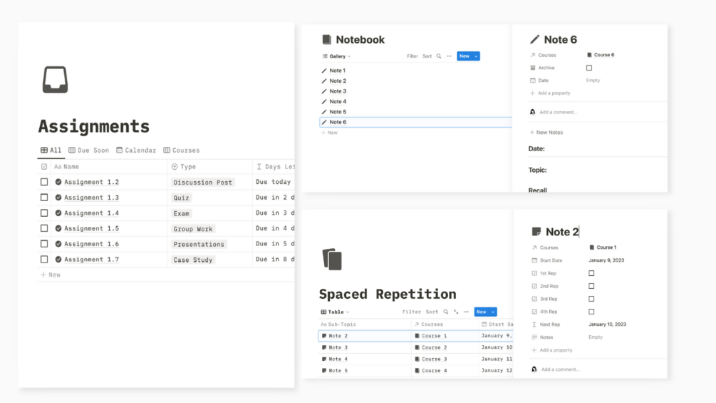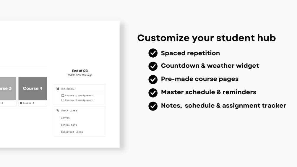 • Add notes to your notebooks, input your schedule for the week, and assignment tracker